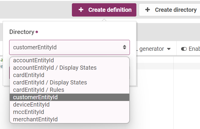 - Click + Create definition. A window displays.