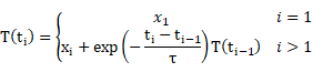 T is the duration specified as an argument to the annotation, xi is the value the update expression evaluates to (for example the transaction amount in the example above) and Ti-1 signifies the time of the previous update of this expression.
