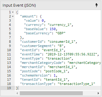 your AMDL is evaluated against. The Input Event panel must contain JSON event